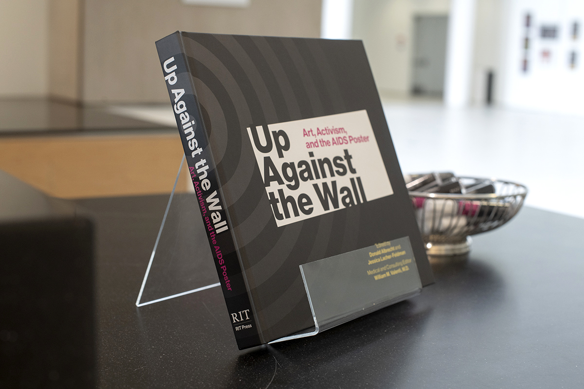 The exhibition catalog and book published by RIT Press, Up Against the Wall: Art, Activism, and the AIDS Poster, accompanies the exhibit at the Memorial Art Gallery of the University of Rochester. For more information, go to https://www.rit.edu/press/against-wall.