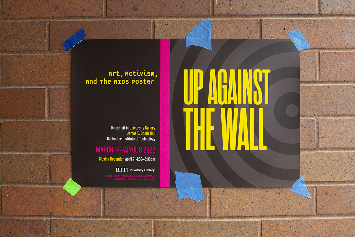 “Up Against the Wall: Art, Activism, and the AIDS Poster” will be on view at RIT’s University Gallery March 14 through April 8. This is a satellite companion exhibition to the main exhibition of AIDS posters at the Memorial Art Gallery, March 6 through June 19.