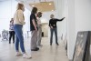 Museum Studies students assist Wendy Marks, director of the University Gallery, in installing "Up Against the Wall: Art, Activism, and the AIDS Poster" which will be on view at RIT’s University Gallery March 14-April 8, 2022. This is a satellite companion exhibition to the main exhibition of AIDS posters at Memorial Art Gallery, March 6-June 19, 2022.