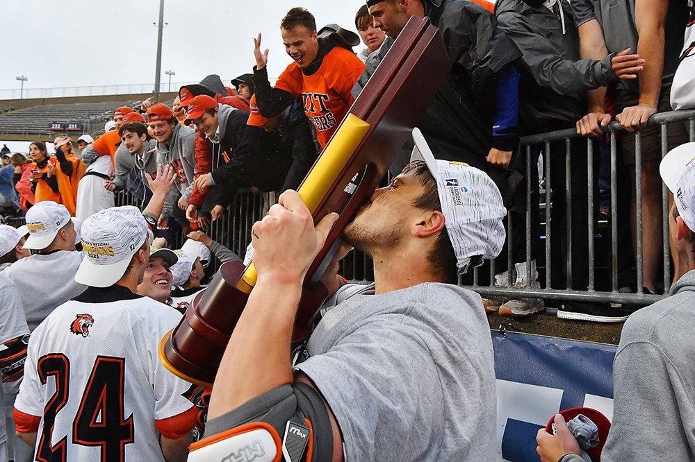 The men’s lacrosse team capped off an undefeated season earning the program’s first NCAA title. RIT senior midfielder Ryan Barnable scored the game-winning goal as the Tigers earned a 15-14 double-overtime victory over Salisbury in the 2021 NCAA Division III National Championship game May 30 at Rentchler Field in East Hartford, Conn.
