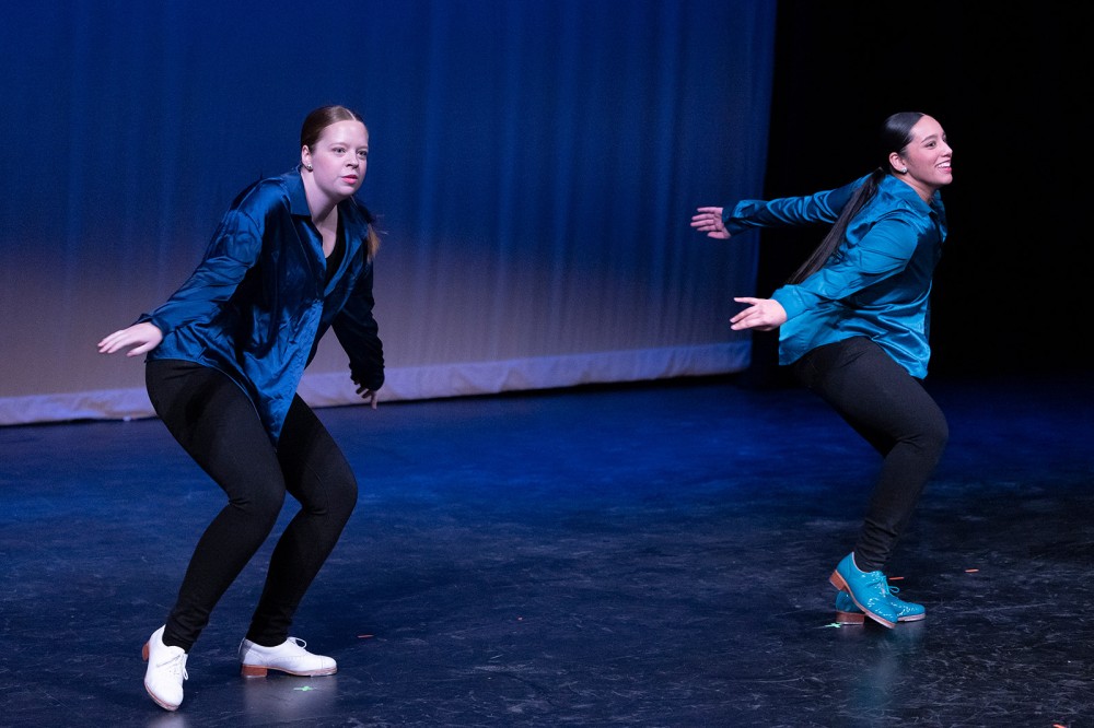 Currents in Sync, a tap dance duo of Hannah Boettcher, left, a fourth-year physician assistant major from Brewerton, N.Y., and Yasmin Khan, a third-year biology major from Cicero, N.Y., won second prize and $500 in Ovation: RIT Performing Arts Showcase on Feb. 7. They have been dancing together for more than 10 years.