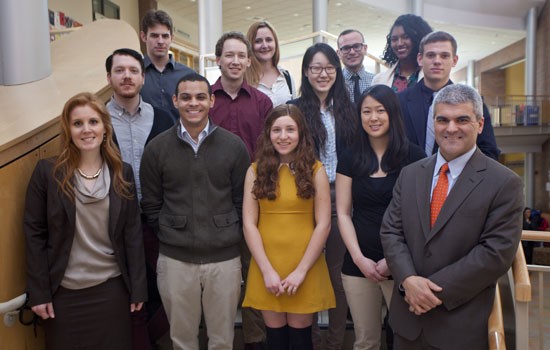 Honorees, with College of Liberal Arts Dean James Winebrake, gather at the Henry and Mary Kearse Distinguished Lecture and Student Writing Award Ceremony on April 11.
