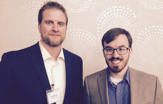 Mendon Precision CEO John Bonzo, left, and Splyce eSports CEO Marty Strenczewilk won the top two spots in the 2015 Rochester Venture Challenge.