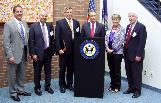 Rep. Chris Collins at Venture Creations Friday, flanked by officials from RIT.