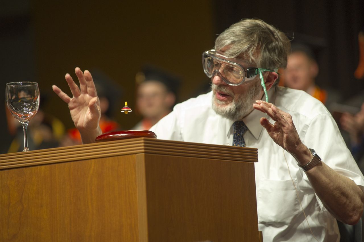 In a highly entertaining presentation, Phillips employed balloons, liquid nitrogen, carnations, rubber bands and a racquetball to demonstrate not only some principles of physics, but also the importance of finding fun in your life’s work.