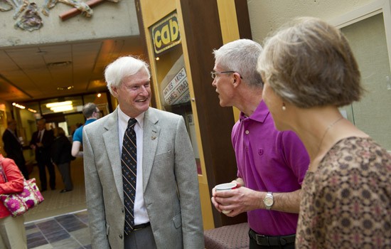 President Bill Destler mingles during the coffee hour before his Address to the Community where he recognized recent accomplishments and outlined goals for the 2012–2013 academic year.