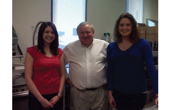 Francis Domoy, (center) newly appointed chair emeritus of RIT’s School of Hospitality and Service Management, joined Serita Randall (left) and Elizabeth Lincoln (right), students in the school and co-chairs of the 2010 Puttin’ on the RITz Dinner, during a break from their preparations for the event this past weekend.