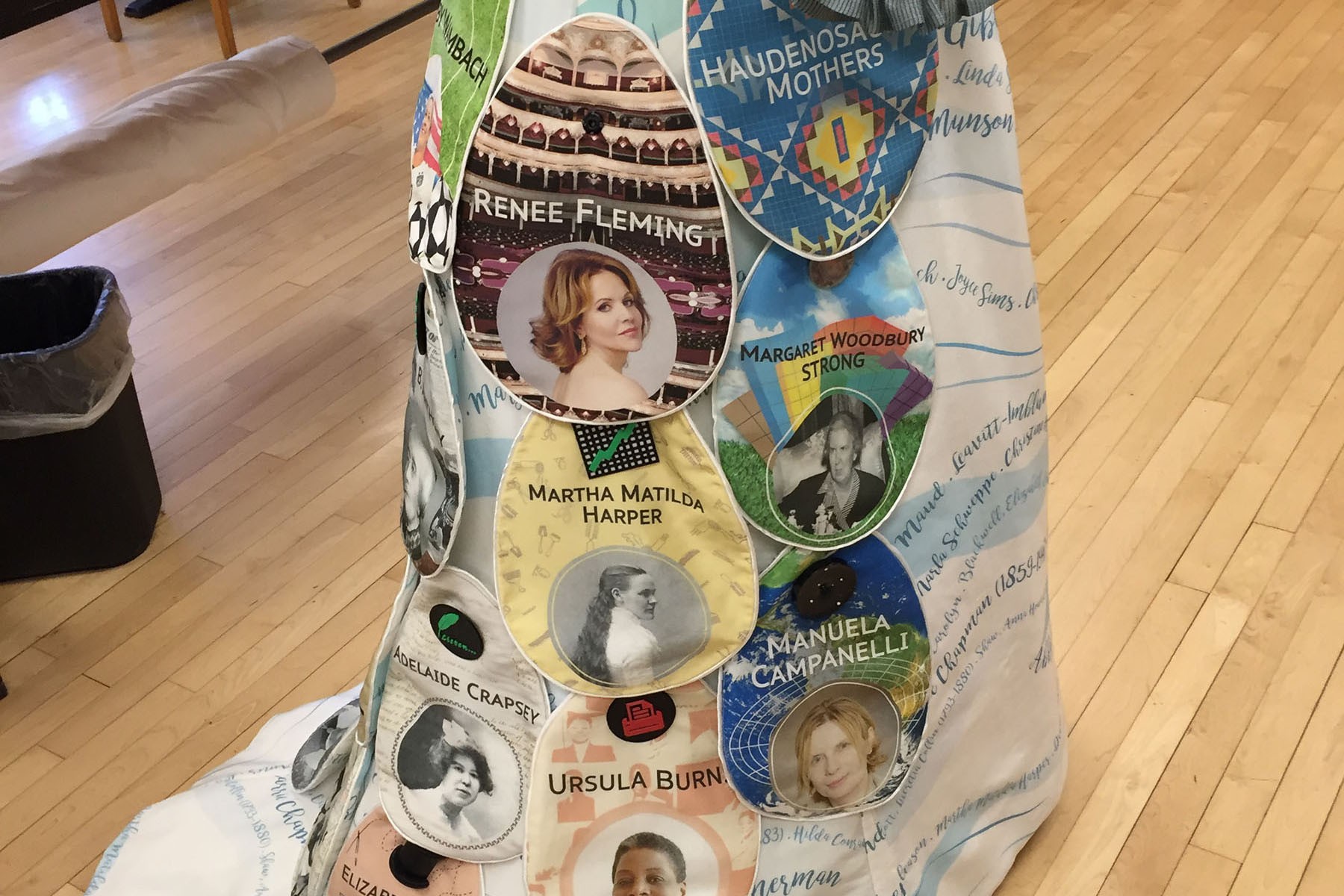 The charming Women of Rochester Dress displays examples of printing on fabric and has the names of over 100 famous females who have strong ties to or were born in Rochester, such as Susan B. Anthony, former U.S. soccer star Abby Wambach and Kate Gleason. Some of the more well-known women are represented with special photo panels.