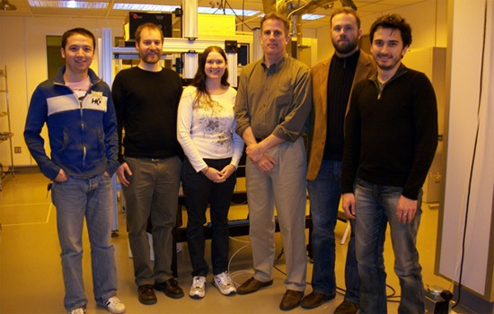Burak Baylav (far right) was the recent Best in Session winner at TECHCON 2013 for his research on a new processing technique with viable implications for the semiconductor industry. He is shown with student-colleagues from the Nanolithography Research Lab in the Kate Gleason College of Engineering (left to right) Peng Xie, Neal Lafferty, Monica Kempsell, Professor Bruce Smith and Andrew Estroff.