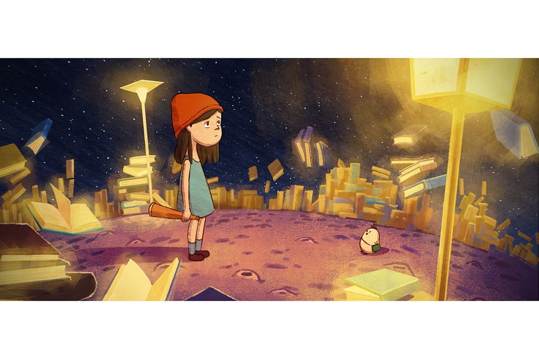 Chu said a major project in the bunch was “The Distance of a Light Year,” an in-progress 2D animation “about a little girl looking for love in space.” A small part of the animation that was entered into the competition was made during the Pre-production for Animators class. Chu said that particular digital painting was outlined and colored using a Wacom tablet with Photoshop.