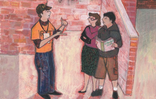 Counselors in RIT's Office of Financial Aid and Scholarships can answer questions about paying for college. (Illustration by Carly Schonberg '08)