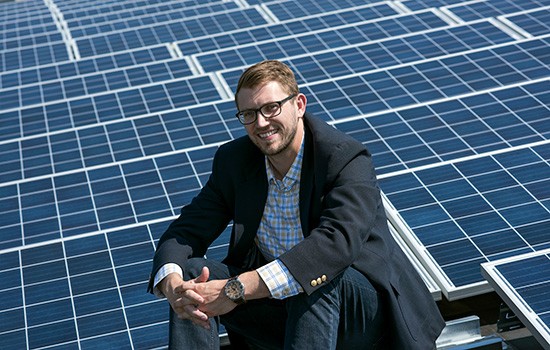 Mike Waller ’16 (sustainability) is director of sustainability at Rochester Regional Health. This solar array is one of his initiatives.
