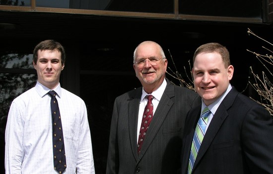 Adam Weatherbee ’10, left, completed an internship at Northwestern Mutual Financial Network’s Rochester office with David DuFlo ’70, center, and Russell Schwartzbeck ’97.