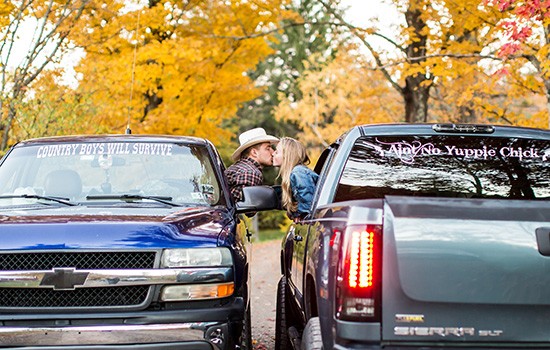 “It was quick. We had our first kiss in the back of a Ford pick-up truck, which felt so wrong because we’re both Chevy people,” Danyelle said. “We’ve been stuck with each other ever since. It was a really redneck romance.”