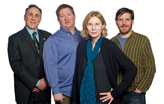 Research at the Center for Computational Relativity and Gravitation at Rochester Institute of Technology explores extreme astrophysical phenomena through Albert Einstein’s general theory of relativity. Several members of the center contributed research to the LIGO Scientific Collaboration that helped confirm Einstein’s prediction of the existence of gravitational waves. Members of the center include, left to right in the front row, Jam Sadiq, John Whelan, Jason Nordhaus, Monica Rizzo, Carlos Lousto and Manuela Campanelli, director; in the second row, Joshua Faber, Brennan Ireland and Naixin (Chris) Kang; in the third row, Yosef Zlochower, Yuanhao (Harry) Zhang and Richard O’Shaughnessy; in the fourth row, Dennis Bowen and Jake Lange; and in the fifth row, Zachary Silberman, Hans-Peter Bischof and James Healy.