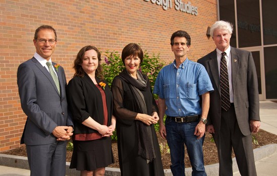 Four people were inducted in RIT’s Innovation Hall of Fame on May 4. From left to right, Kevin Surace ’85; Robin Cass, representing the School for American Crafts in honor of the late Aileen Osborn Webb; Patricia Moore ’74; Dean Kamen and President Bill Destler.