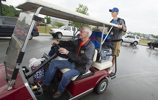 Christopher Spinelli, a first-year student in mechanical engineering from Camillus, N.Y., gets a lift from RIT President Bill Destler. RIT welcomes some 3,300 new undergraduates to the Henrietta campus today, including freshmen and transfer students. The freshman class hails from 47 states—plus the District of Columbia, Puerto Rico and the U.S. Virgin Islands—as well as 54 countries.