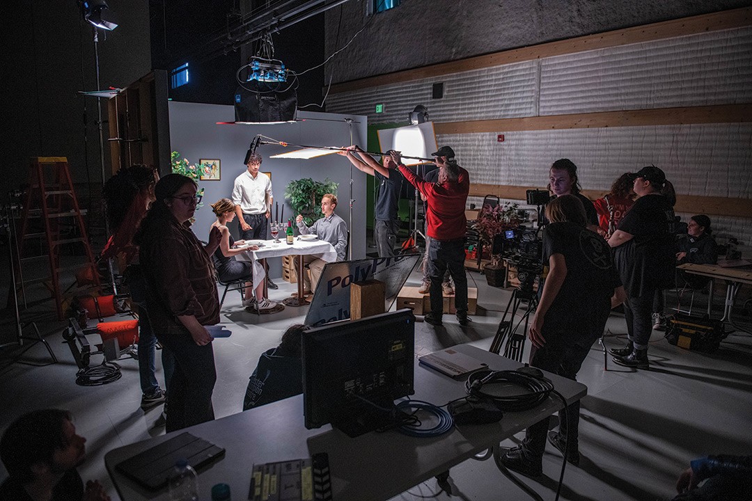 Students work on a film production of a fiction narrative and learn basic shooting procedures, as well as directing, cinematography, producing, location sound recording, and editing in MAGIC Spell Studios.