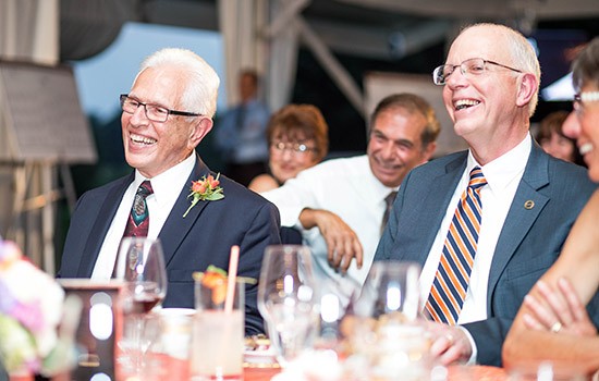 Joseph M. Lobozzo II, left, was honored July 20 with the NRS Award. RIT President David Munson, right, thanked Lobozzo for his ongoing support.