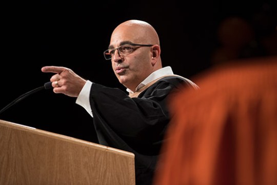 “Being part of the RIT family is the experience of a lifetime, so I encourage each of you to get out of your comfort zone and meet new people,” he said. “Yes, that means the loud ones like me, the quiet ones, the athletes, the nerds, and of course let’s not forget, the scariest of all people here on campus, the professors.”