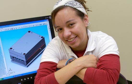 But once school began, she found herself struggling in class. “It was hard for me.” To compound matters, she says the other students in her class—six boys—thought they were better than the girls. Oregel eventually considered dropping out of her manufacturing computer-aided drafting class. “In the beginning, it was a struggle for her,” says her teacher, Marcus Holmes, a lecturer in the engineering studies program. But Oregel credits Holmes for encouraging her to continue. “I saw the potential in her,” Holmes says. “I told her if she had a goal, to go for it. And the more she would study and persist, the better she will become. So she started seeing me more and asking questions and participating more in class.”