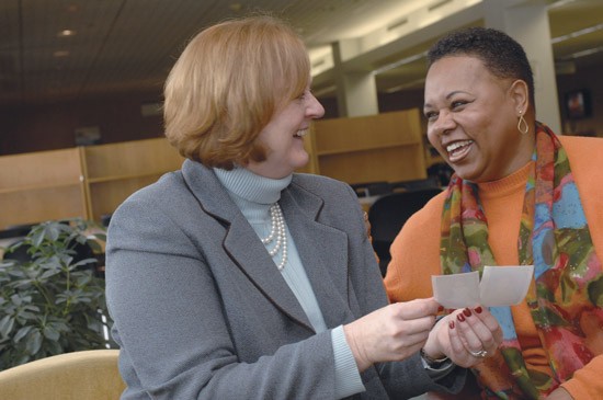 Cindee Gray, left, and Sharon Edwards discovered they had much in common when they were paired in RIT's first Partnerships in Pluralism program in 2004.
