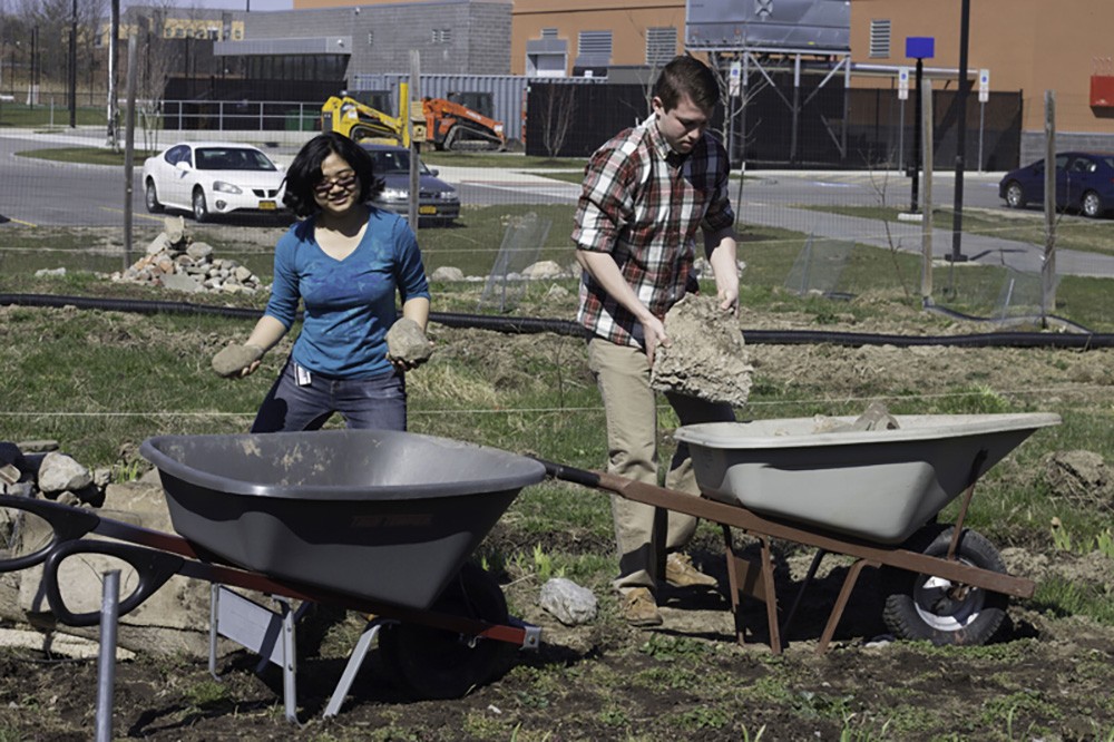 Chi Nguyen, first-year astrophysical science and technology PhD student and Nicholas Burns, first-year biotechnology, helped clean up the community garden on April 16. Over the weekend, volunteers did general clearing and plot allocation as part of Earth Week.