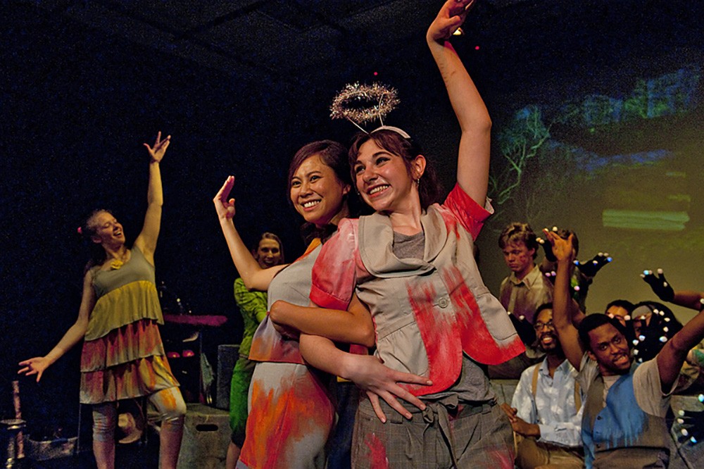 Director Luane Davis-Haggerty mixes deaf and hearing actors in a touring production of the Stephen Schwartz broadway musical, Godspell. NTID Performing Arts presents the show March 10 through 13 in the 1510 Theater Lab in LBJ Hall, with free admission and limited seating.