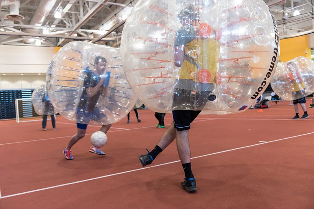 Phi Delta Theta fraternity held a fundraiser to raise money and awareness for ALS, or Lou Gehrig’s disease, a nervous system disease that weakens muscles and impacts physical function. Teams of students played bubble ball soccer for the cause and collected $880.