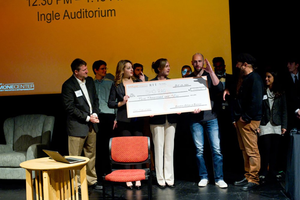 First place in RITâs Tiger Tank competition went to ShoRaq, one of the five teams competing. ShoRaq is an intuitive interface that allows users to purchase specialty clothing from merchandise seen in their favorite shows and movies. The winning team received a $2,000 cash award and a scholarship to attend one of the graduate degree programs at Saunders College of Business. Team Body Cool earned second place for a cooling device worn by people with multiple sclerosis to discreetly control their symptoms during warm weather. -