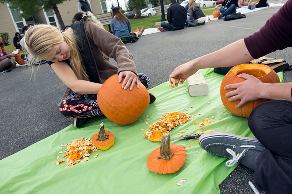 Student residents in Global Village carved pumpkins for Halloween. Brittany Janis, a third-year student in chemical engineering, prepared her pumpkin for carving at the event sponsored by Residence Life. On Oct. 31, RITâs College Activities Board is hosting Halloween Blowout, including a costume contest, from 7-10 p.m. in the Student Alumni Union. -