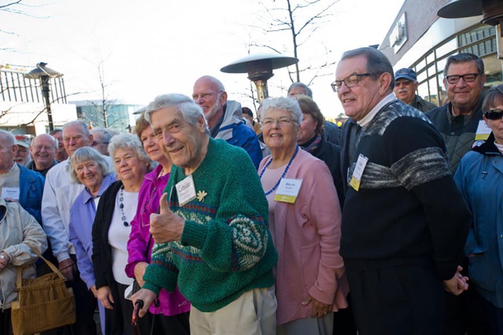 Golden Circle alumni took a tour of campus starting with Global Village before their luncheon on Friday. The luncheon, a Brick City Homecoming & Family Weekend tradition, is for alumni who graduated 50 or more years ago. The Golden Circle event is one of dozens this weekend for alumni and families of current students. For a full schedule, visit http://www.rit.edu/gcr/brickcity/. -