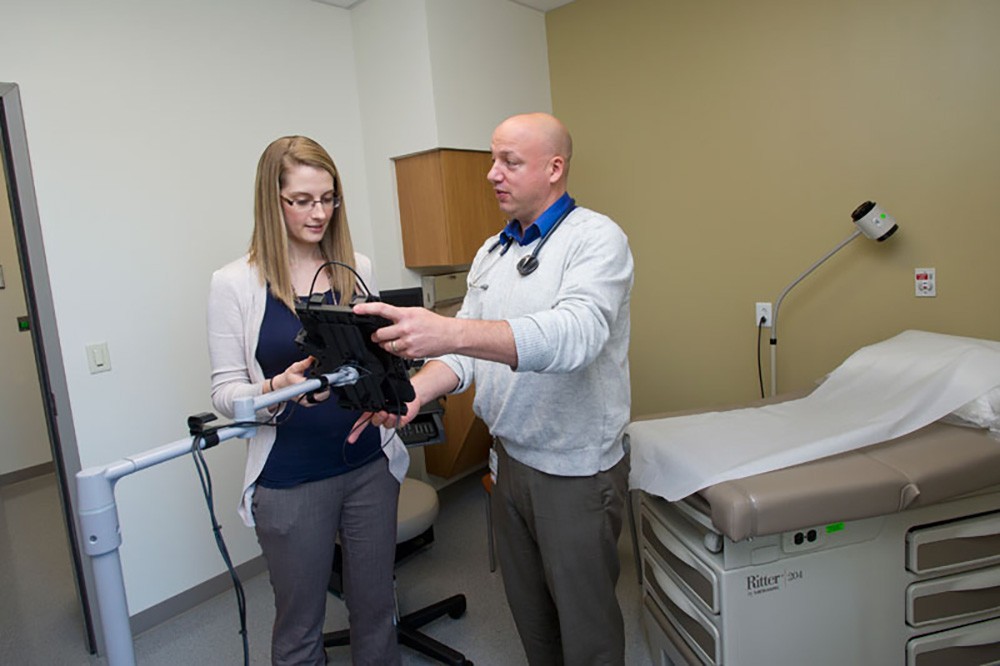 The Rochester Regional Health Family Medicine practice opened its doors in RITâs Clinical Health Sciences Center on Oct. 19. The practice provides primary care with same-day scheduling for RIT faculty, staff and dependents, and community members. It also houses a laboratory blood-draw station. The RIT Student Health Center will remain the primary care facility for undergraduate and graduate students. Shown here are Dr. Eric Wilcox, right, and Ashley Goergen, practice manager. -