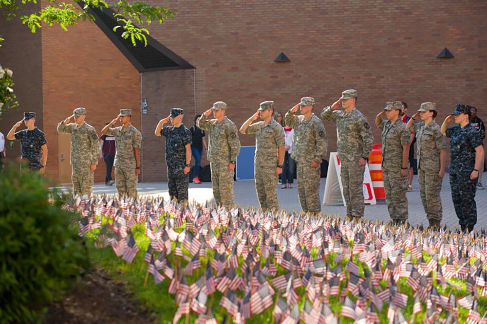 The annual 9/11 Remembrance Vigil was held Sept. 11 on the grass knoll in front of the Sentinel statue. Taps was played at 8:46, 9:03, 9:37 and 10:03 a.m. in remembrance of each airplane that crashed on Sept. 11, 2001. An American flag was planted on the knoll for each of the 2,997 people who died in the attacks. -