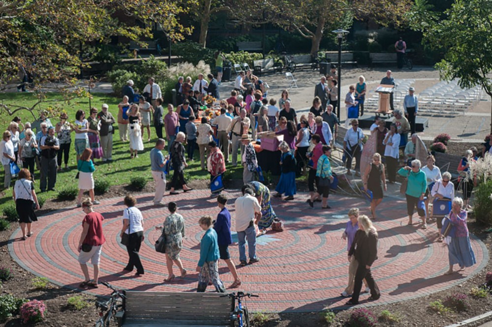 The RIT/NTID community celebrated the official opening of the Jan Strine Memorial Labyrinth Sept. 17. Strine, an award-winning assistant professor at NTID for 30 years, was a mentor to deaf students until her death from cancer in 2013. Strine taught a wellness and spirituality course in RITâs Instructional Wellness Program, often discussing labyrinths. A blue lotus flower representing rebirth and the victory of the spirit is the focal point of the installationâs seven-circuit path, and the design incorporates delicate pieces of sea glass gathered by Strine throughout the years. According to her longtime partner, Jeanne Colombo, who spoke at the ceremony, âJan made the world a better place.â Following the ceremony, guests were invited to walk the labyrinth, placing one foot in front of the other, which is said to relax the body and refresh the spirit. -