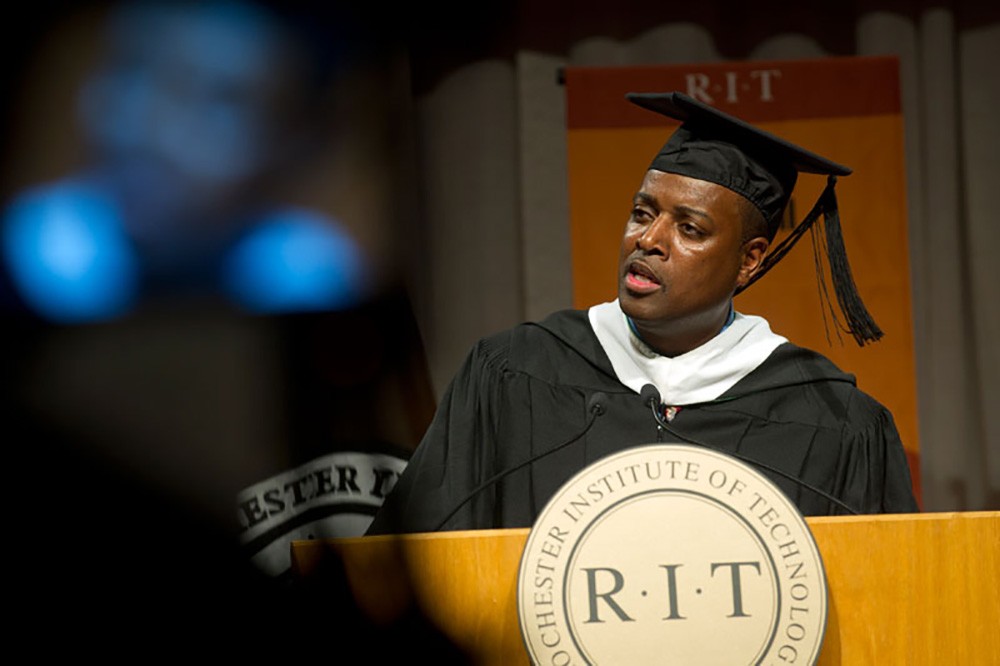 The Convocation for New Students and Families welcomed them to the RIT community. Keynote speaker was Joe Williams, a criminal justice lecturer in RITâs College of Liberal Arts, who won the Outstanding Teaching Award for Non-Tenure Track Faculty this year. -
