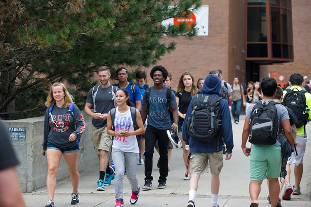 Students throng the quarter mile on the first day of classes. With a record number of freshmen and transfer students, RITâs total enrollment of over 18,500 students is the highest in history. -