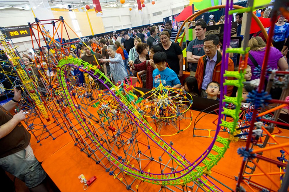 It took 50,000 KâNex pieces to build the Theme Park Engineering exhibit on display in the Gordon Field House. The recently formed RIT Theme Park Enthusiast Club was a first-time exhibitor at Imagine RIT. -
