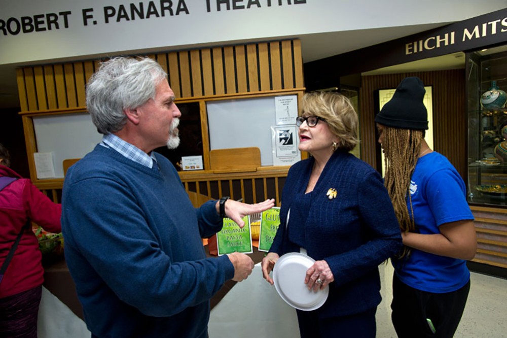 The impact of drug-resistant âsuperbugsâ on public health was the topic of a program held at RIT on March 12 and hosted by RITâs College of Health Sciences and Technology, Rochester Regional Health System and Congresswoman Louise Slaughter. Here, Slaughter and Jeff Lodge, associate professor in the Thomas Gosnell School of Life Sciences in RITâs College of Science, chat at the reception. -