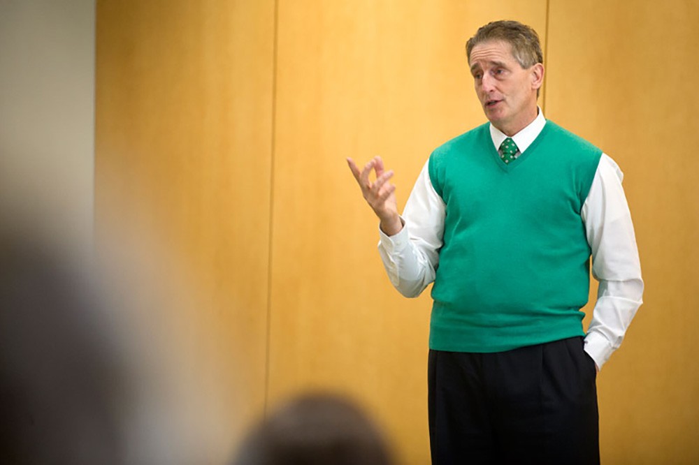 Bob Duffy â93 (multidisciplinary studies), president and CEO of the Rochester Business Alliance and former lieutenant governor, delivers remarks inside RITâs Golisano Institute for Sustainability auditorium on March 17. As part of the Spring 2015 ArchiTALKS Guest Lecture Series sponsored by the Master of Architecture program, Duffy spoke about upcoming opportunities related to economic development in the Rochester area. The lecture is in conjunction with the GIS programâs Urban and Regional Planning course. -