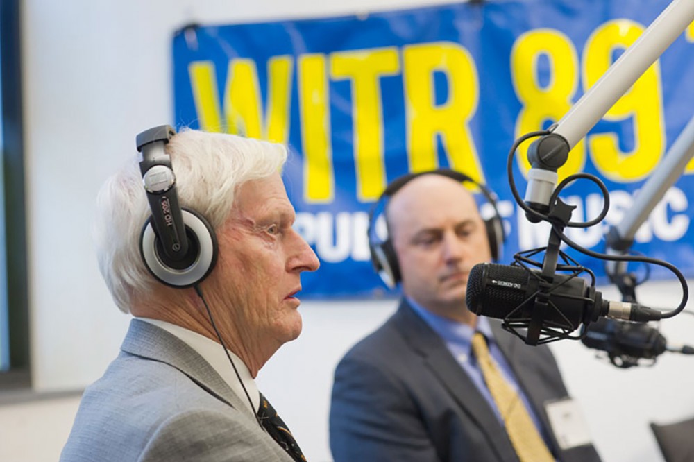 RIT President Bill Destler was among those attending the grand opening on March 18 of Studio X, the newest broadcast area for WITR radio. The studio was christened with âAsk Destler,â the first show to originate from the studio immediately after the celebration events. -