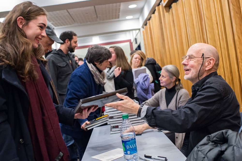 The Charles Arnold Lecture Series presented photographer Eugene Richards March 18. Richards is also a writer and documentary filmmaker who has authored 17 books, the most recent being War is Personal, a documentation in words and pictures of the human consequences of the Iraq war. Here, Richards signed his book for student Brittainy Newman. -