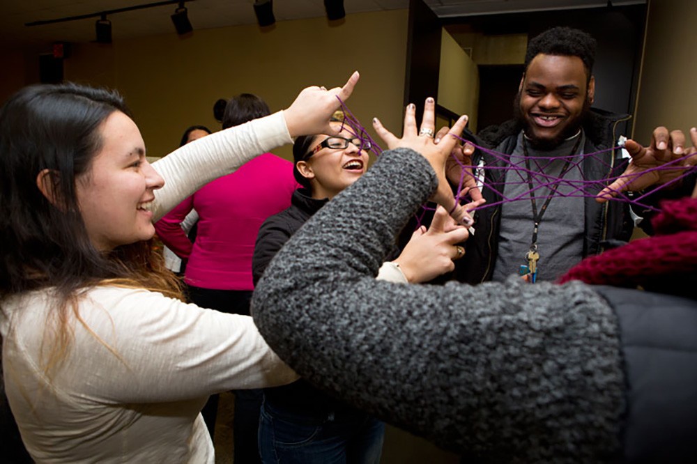 A celebration of Native American culture was held Nov.19. as part of Native American Heritage Month. The event included traditional games, crafts and food. From left, Juanita Sarmiento, Corinne Mendieta and Dwayne Harding play Jacob’s Ladder with yarn.