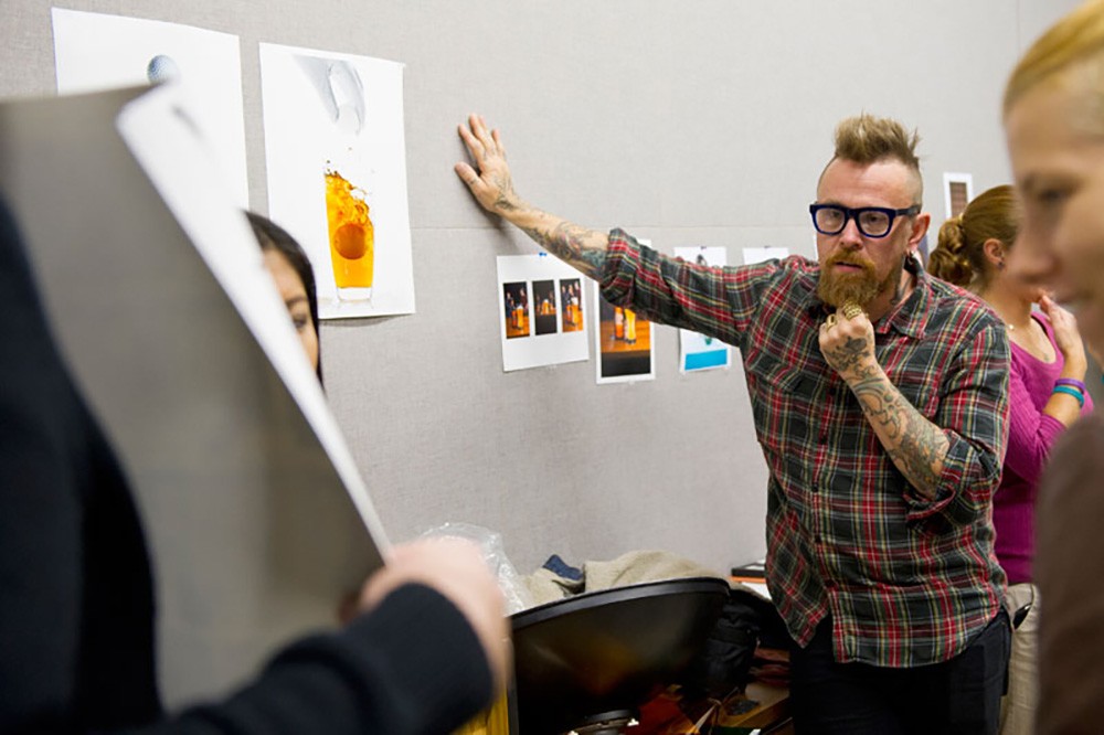 Clay Patrick McBride, shown here holding a critique of students’ work, joins RIT this fall as a guest lecturer in the School of Photographic Arts and Sciences.