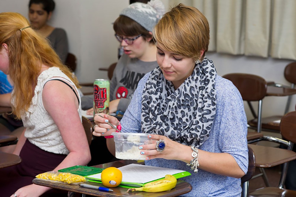 Kaitie Spaude, a first-year journalism/media arts technology student from Little Suamico, Wis., is educating her peers about the Nigerian Kibera slums for a project in her “Exploration of Places and Spaces” class. For 20 days, Spaude replicated the slum dwellers’ $1 a day diet and slept on a blanket instead of a bed in her residence hall. Read more in the December/January issue of Athenaeum or online.