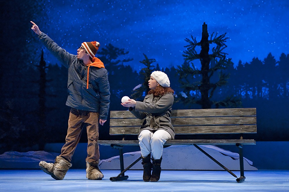 The NTID Performing Arts Program presents “Almost, Maine,” a magical, funny and heart-warming story of love in the frozen woods of Maine. Showtimes are 7:30 p.m. Nov. 13–15 and 2 p.m. Nov. 16 in the Panara Theatre. Tickets are $5 for students and seniors and $7 for general public. Pictured here are Logan Lofgren and Kelsey Lindhorst.