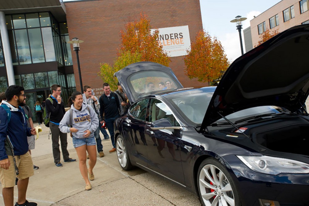 Saunders College of Business presented the Gasser Lecture Series featuring Jerry Greenfield, who co-founded Ben & Jerryâs ice cream with Ben Cohen in 1978. Tesla Motors, an American company that manufactures electric cars, provided him with ground transportation for the event. -