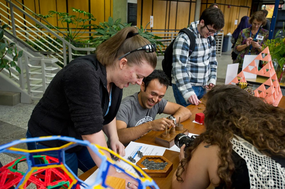Students test out interactive science exhibits during Brick City Homecoming & Family Weekend. In addition, the College of Science offered lectures and a reception. -