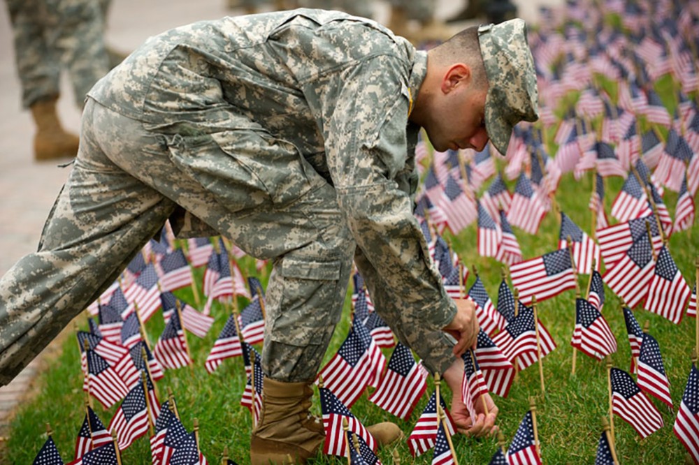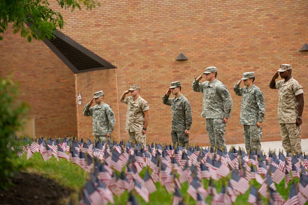 The third annual 9/11 Remembrance Vigil was held Sept. 11 on the grass knoll in front of the Sentinel statue. Taps was played at 8:46, 9:03, 9:37 and 10:03 a.m. in remembrance of each airplane that crashed on Sept. 11, 2001. An American flag was planted on the knoll for each of the 2,997 people who died in the attacks. -