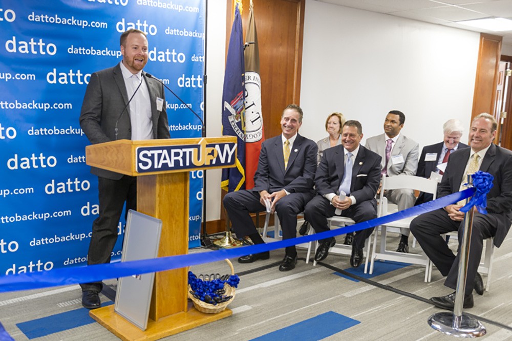 Austin McChord, founder and CEO of Datto Inc., officially opened his Inc. 500 firmâs offices in downtown Rochester on Sept. 12. Datto, an information backup and disaster recovery firm, is the first company in the Rochester region to launch as part of the START-UP NY program. The company takes the fourth floor of the RIT-owned 40 Franklin St. in Rochester. McChord started Datto in 2007 while finishing his degree in bioinformatics from RIT. -
